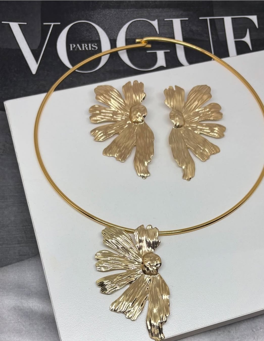 Gold Floral Statement Necklace & Earrings Set – Bold Designer Jewelry