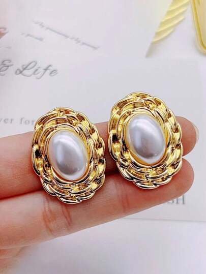 Vintage Gold Pearl Stud Earrings – Classic Aesthetic Jewelry
